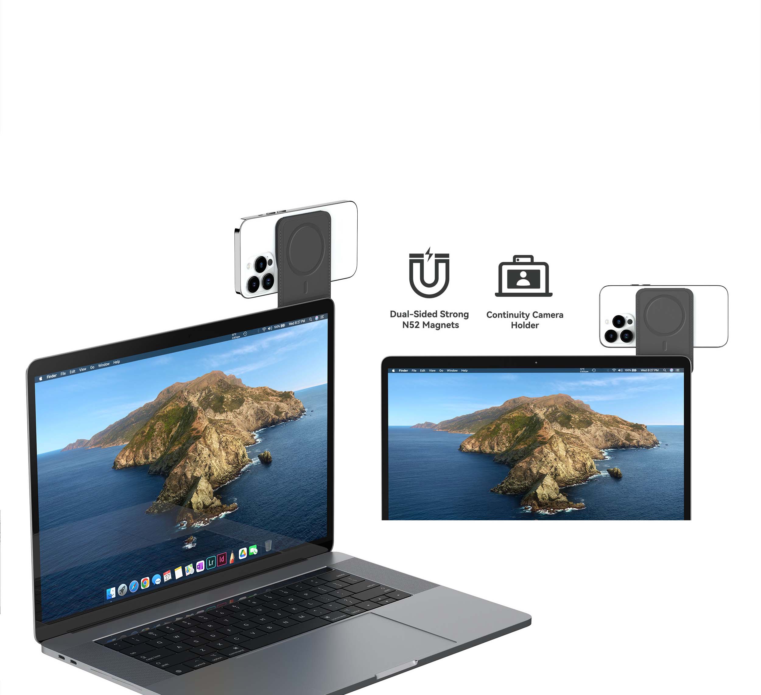 With its dual-sided MagSafe®, OMOOSPACE PRO seamlessly transforms your iPhone into a camera for your Mac using the latest Apple system settings, elevating your video conference experience.