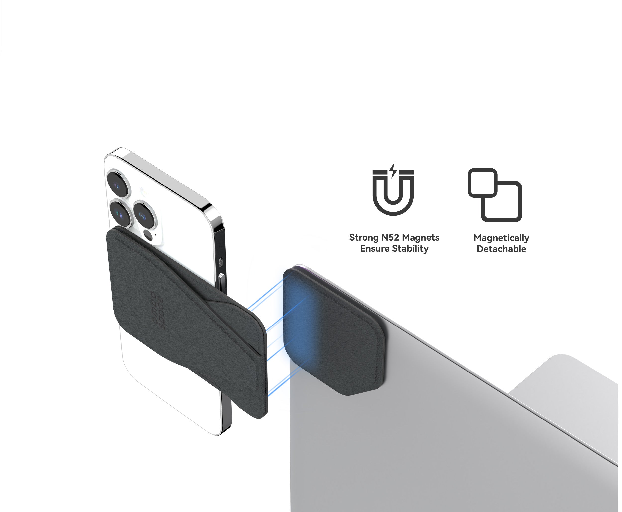 It is a all-in-one solution that serves as a phone mount, wallet, kickstand, grip, and continuity camera holder. This versatile product is designed to improve your productivity and organization. With OMOOSPACE PRO, you can effortlessly position your phone alongside your main screen, allowing you to manage tasks and stay informed without missing any details in your line of sight. Beyond that, it can also transform into a kickstand, grip, wallet, or even a phone mount on any flat metal surface, providing convenience for your everyday carry needs. This innovative design combines more than five different phone gadgets into one pocket-sized phone accessory.